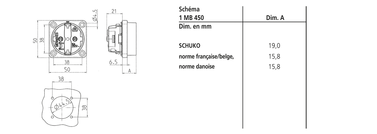 | Pôles | 2 p+PE |