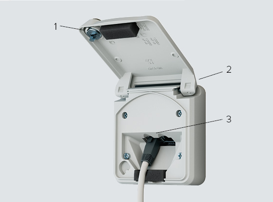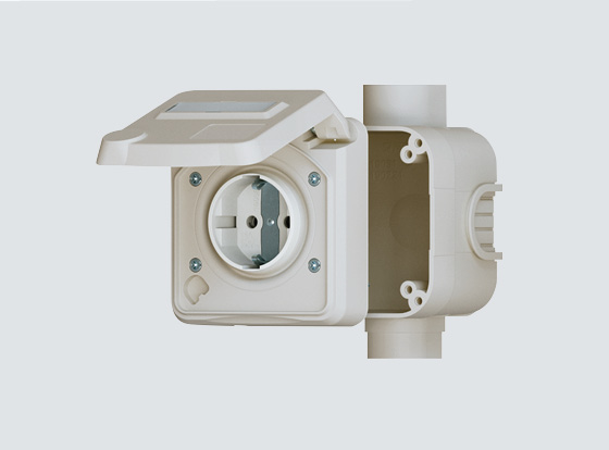 Le grand volume de câblage offre suffisamment de place pour des conducteurs jusqu’à 6 mm². La partie inférieure peut être tournée de 180°, ce qui permet une entrée de câble par le bas sans travail supplémentaire. L’indice de protection IP54 (protégé contre les corps étrangers et les projections d’eau) rend les prises en saillie sûres pour de nombreux domaines d’application. Des membranes supplémentaires sont disponibles dans le boîtier.