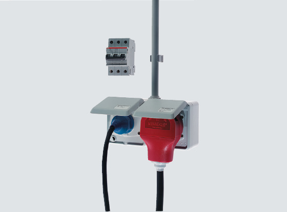 Une combinaison de prises fréquemment utilisée: 16 A CEE et SCHUKO®. Lors du raccordement de cette combinaison via une seule ligne d’alimentation, l’utilisation d’un disjoncteur tripolaire est obligatoire.