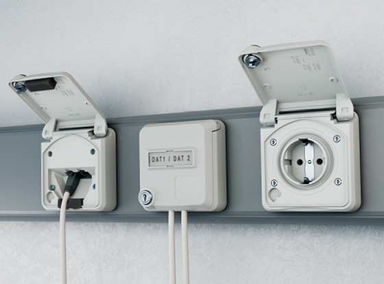 Polyvalentes et fiables: Nos prises de données Cepex conviennent parfaitement aux postes de contrôle, aux zones de stockage, aux laboratoires, ainsi qu’aux aéroports et aux lignes de production. Leur fonctionnement s’effectue via des câbles patch courants. Elles sont compatibles avec les prises Cepex, CEE et SCHUKO®. Qu’il s’agisse d’un montage en saillie, encastré ou dans une goulotte : ces prises s’adaptent partout.