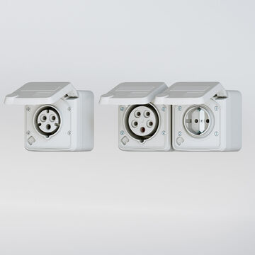 Le grand volume de câblage offre suffisamment de place pour des conducteurs jusqu’à 6 mm². La partie inférieure peut être tournée de 180°, ce qui permet une entrée de câble par le bas sans travail supplémentaire. L’indice de protection IP54 (protégé contre les corps étrangers et les projections d’eau) rend les prises en saillie sûres pour de nombreux domaines d’application. Des membranes supplémentaires sont disponibles dans le boîtier.