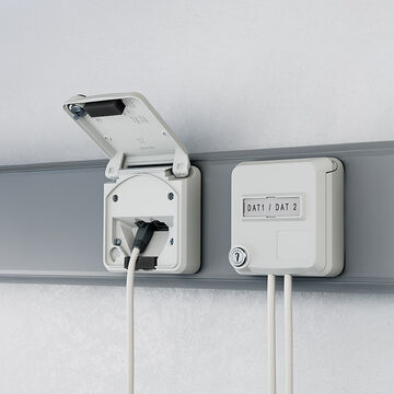 Polyvalentes et fiables: Nos prises de données Cepex conviennent parfaitement aux postes de contrôle, aux zones de stockage, aux laboratoires, ainsi qu’aux aéroports et aux lignes de production. Leur fonctionnement s’effectue via des câbles patch courants. Elles sont compatibles avec les prises Cepex, CEE et SCHUKO®. Qu’il s’agisse d’un montage en saillie, encastré ou dans une goulotte : ces prises s’adaptent partout.