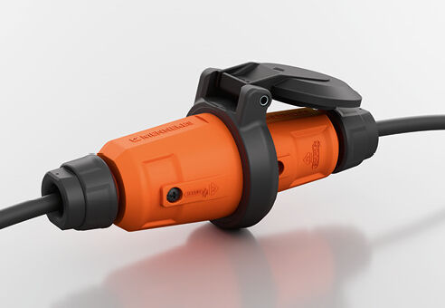 Pour les applications soumises à de fortes contraintes mécaniques ou à une humidité permanente, des fiches et coupleurs SCHUKO® avec indice de protection IP68 sont disponibles. Ils sont équipés d’une bague à baïonnette et d’un capuchon de protection, et restent étanches même en cas d’immersion lorsqu’ils sont branchés.