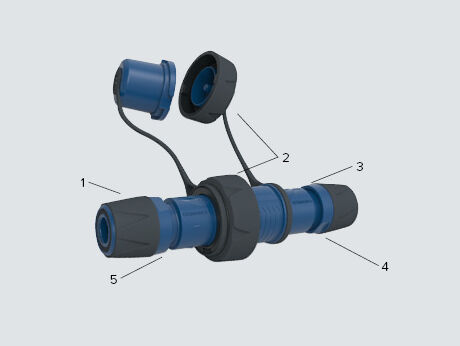 Les surfaces de préhension à relief ainsi que le presse‑étoupe en caoutchouc, lui aussi structuré, assurent une excellente prise en main. Même en présence d’humidité ou d’eau, les fiches et coupleurs peuvent être saisis et manipulés en toute sécurité.