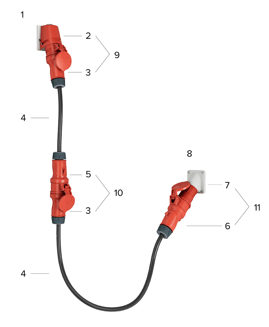 Onze contactmaterialen worden conform EN IEC 60309-1 (de internationale standaard voor stekkers en contactdozen, leidingskoppelingenn en contactmateriaal voor apparaten) benoemd: